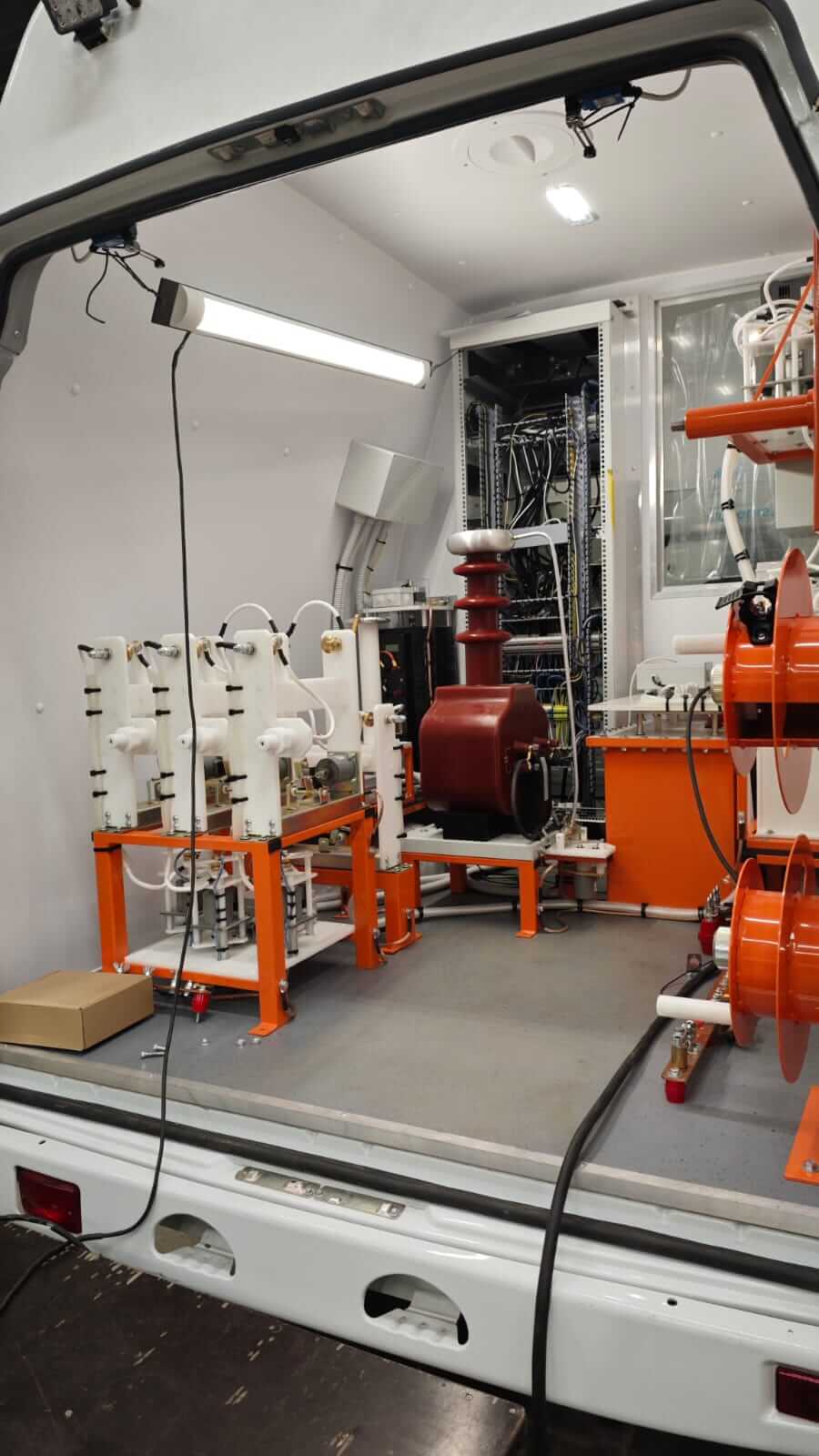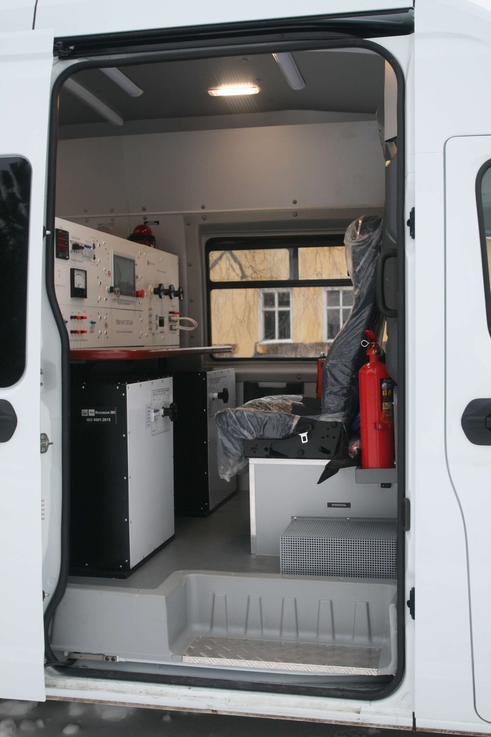 - Безопасность: передвижная лаборатория оснащена всем необходимым для проведения безопасных работ с электроустановками: средства индивидуальной защиты (СИЗ), приборы для измерения параметров электросетей и др;