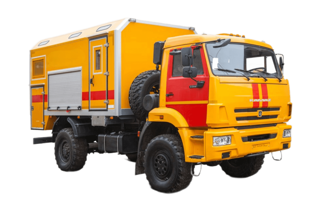Передвижная мастерская газораспределительных станций (ГРС) на базе КАМАЗ предназначена для транспортировки рабочих бригад и необходимого оборудования с целью проведения аварийно-ремонтных и восстановительных работ в системах газопроводов и городских газовых сетей.