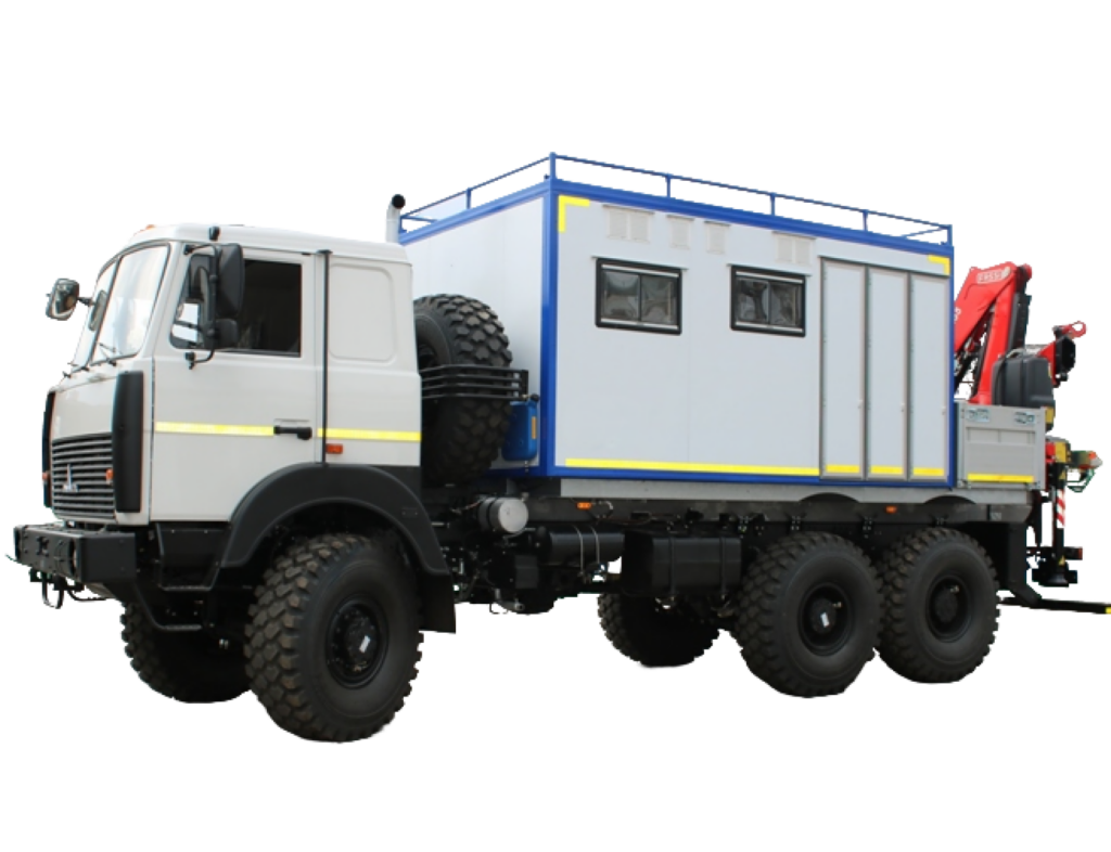 Передвижная аварийно-ремонтная мастерская (ПАРМ) с КМУ на базе МАЗ представляет собой модульную конструкцию на средне- и крупнотоннажных шасси с крано-манипуляторной установкой и обеспечивает доставку бригады и специального оборудования к местам проведения работ всех категорий по ремонту и восстановлению техники в условиях отсутствия стационарных ремонтных баз, а также погрузочно-разгрузочных и монтажно-строительных работ.